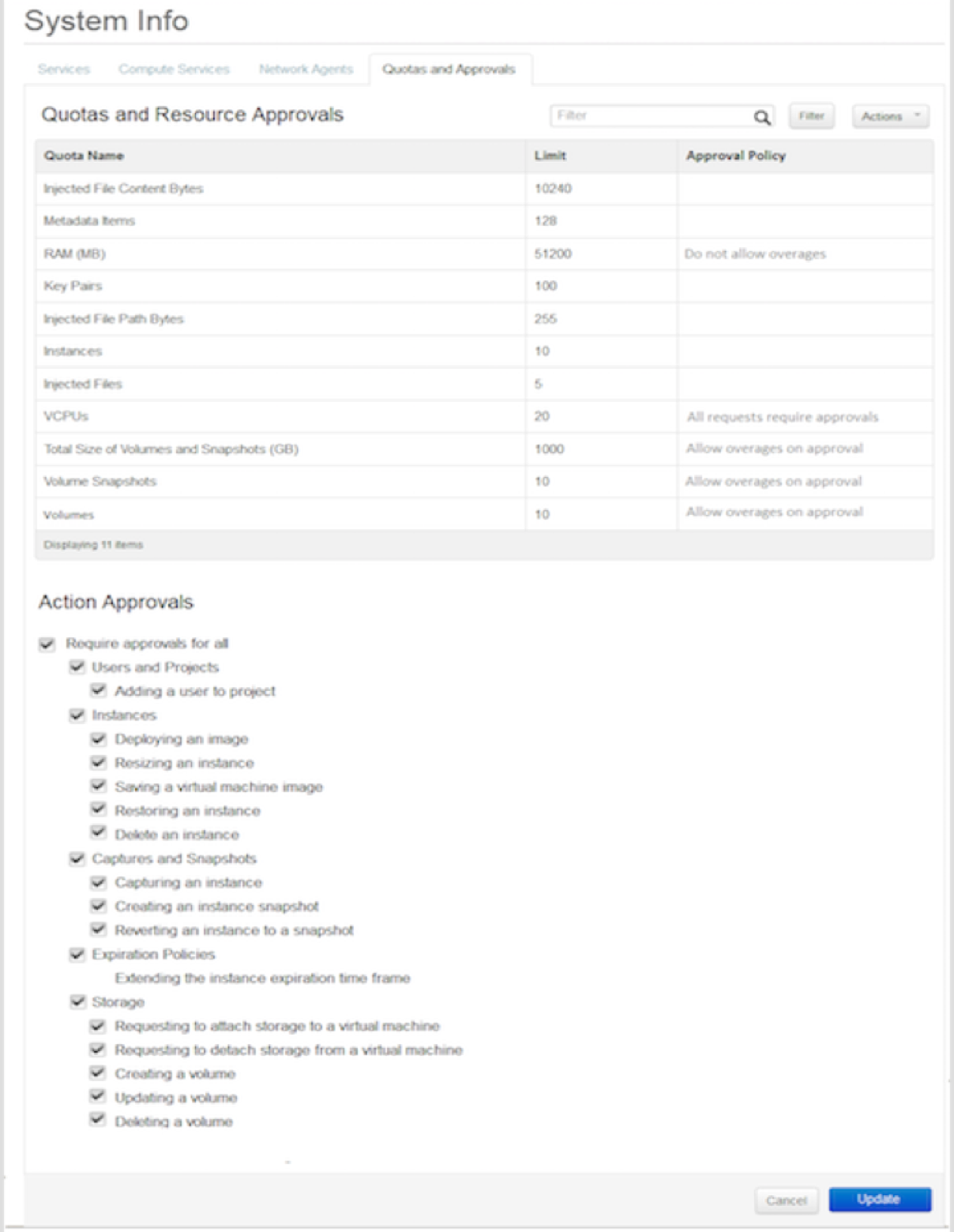 When I created designs, I had to include two major feature additions to Horizon: Approval Policies and Expiration Policies. The Approval Policies allowed administrators to approve VMs configurations before they were deployed. Expiration Policies set a time when a deployment would expire. Because they were both used to manage memory, CPU and storage allocation, I placed the Approval Policies and the Expiration Policies from our product next to the Quotas in Horizon.