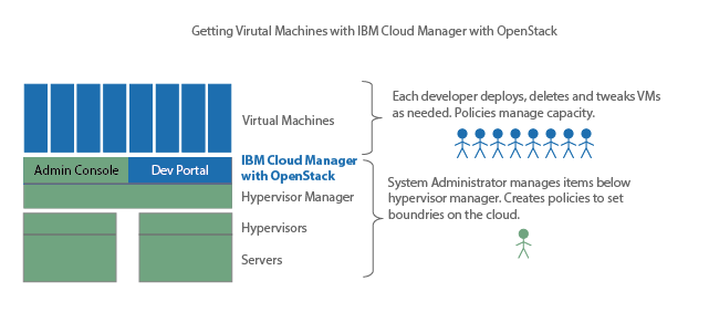 SmartCloud Entry was a product introduced in 2009 by IBM to enable customers to quickly set up a test and development cloud environment on their company network. It enabled administrators to provide development teams access to self-service virtual machine (VM) deployments, while also controlling resource allocation with policies. By 2015, much of SmartCloud Entry had been rewritten to replace its original backend code with OpenStack, an open source cloud project. It was also renamed to Cloud Manager with OpenStack.